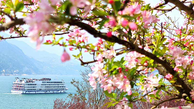 3月13日,重慶市巫山縣境內長江三峽巫峽兩岸桃花、海棠花盛開。