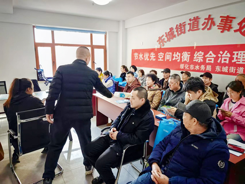 東北網綏化3月19日訊 ( 張新岩 全媒體記者 陳俊杉 ) 3月16日,在第三十四屆『世界水日』、第三十九屆『中國水周』即將來臨之際,綏化市水務局聯合黑龍江省水文水資源中心綏化分中心、北林區水務局、市城市節水指導服務中心,走進北林區東城街道海城社區,把節水知識、護水理念送到居民家門口。