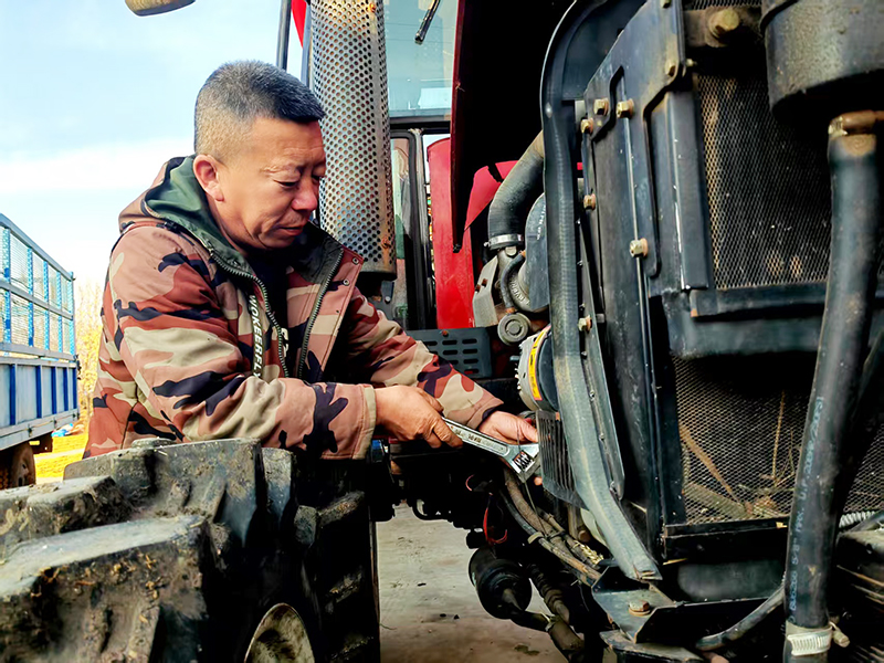 筆者在寬四村農機合作社看到,農機師傅正在檢修大輪機車、調試精量播種機。蓮花鎮供銷社化肥經銷處的劉尚海正組織4名力工准備卸新進來的化肥。蓮花鎮廂黃後三村種地大戶劉大勇顧不上吃早飯,有空兒就去檢修機車,確保春耕播種時使用。