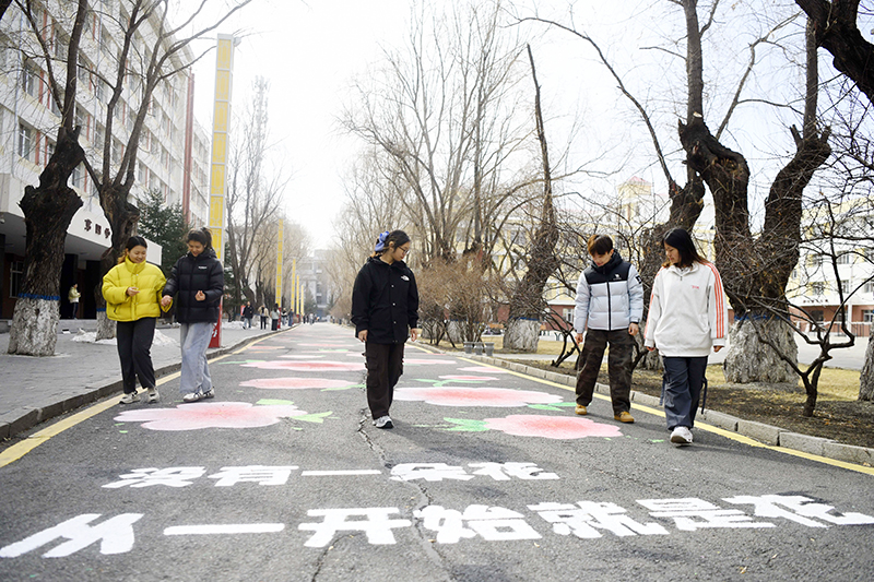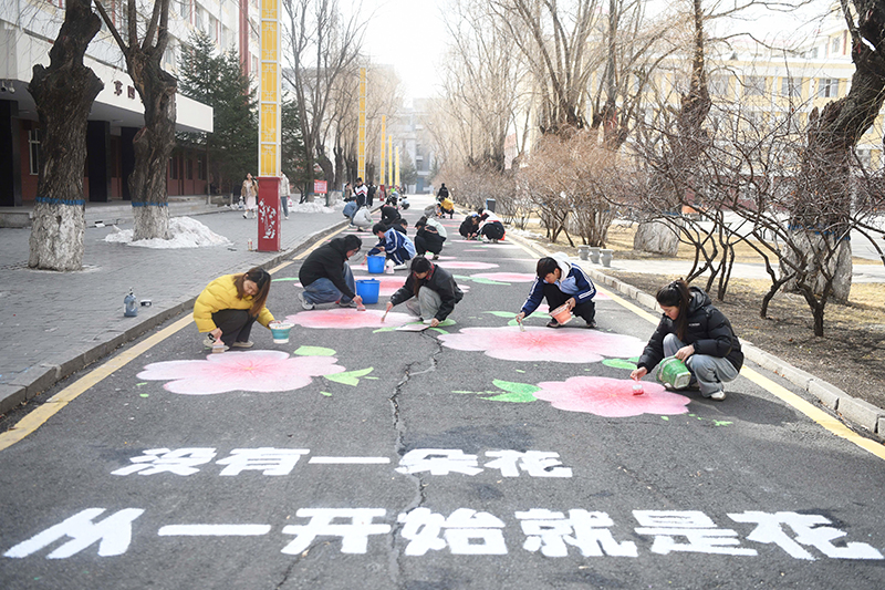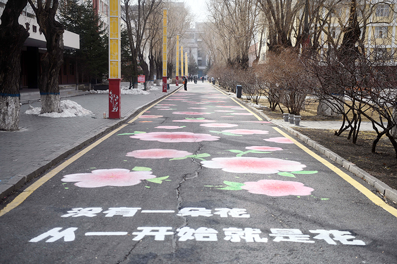 綏化學院『潤物無聲』聽障大學生牆體彩繪志願服務隊的志願者們用畫筆在校園彩繪路上繪制了135朵花,在豐富校園文化生活的同時,激勵他們克服自身困難,迎來屬於自己的『花季』。
